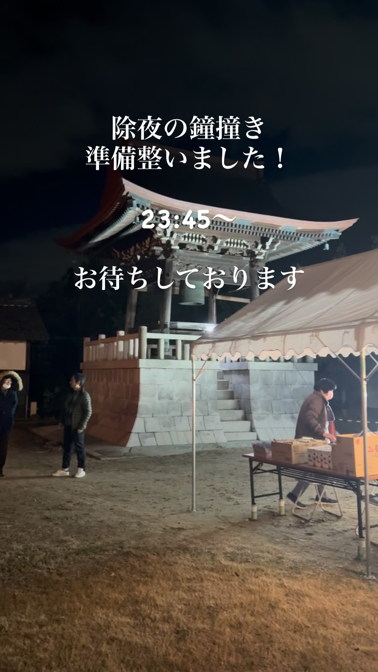 除夜の鐘撞き 今年も大晦日に除夜の鐘撞きをします。 豚汁や温かい飲み物の他に、御門徒のヨシヅヤ様からご寄付いただいたお菓子をご用意しております(無くなり次第、終了)。 境内では焚き火をしておりますが、十分に防寒の上ご参加下さい。 皆様のご来山、お待ちしております😊 鐘撞き:23:45〜1:00まで 修正会: 0:00〜 ※仏様の前で身を正し 新たな年を迎えるための法要です。 #願應寺 #稲沢市 #浄土真宗 #除夜の鐘つき #大晦日の夜